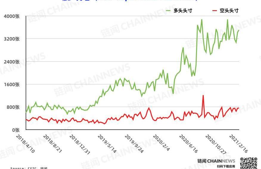 总持仓数量在最新一期数据中自11055张进一步上升至11426张,该数值连续第二周上涨并创出近四周新高,行情的横盘并没有明显影响市场的乐观氛围,不过值得注意的是,最新统计周期内仓位增持幅度相较上一统计周期增幅有所下降,由此可见,高位横盘对于新资金入场的积极性还是在所难免地起到了一些偏负面的影响。