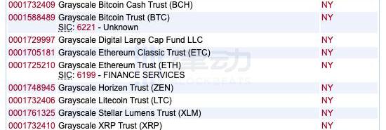 同时,该网站也显示了灰度现有的同名信托实体,包括「GRAYSCALEBITCOINTRUST(BTC)」、「GRAYSCALEBITCOINCASHTRUST(BCH)」、「GRAYSCALEETHEREUMCLASSICTRUST(ETC)」、「GRAYSCALEETHEREUMTRUST(ETH)」、「GRAYSCALEHORIZENTRUST(ZEN)」、「GRAYSCALELITECOINTRUST(LTC)」、「GRAYSCALESTELLARLUMENSTRUST(XLM)」、「GRAYSCALEXRPTRUST(XRP)」、「GRAYSCALEZCASHTRUST(ZEC)」。