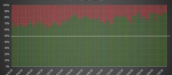 散户持仓方面,多头头寸自3540张下降至3405张,空头头寸自478张同步下降至425张。散户账户在最新统计周期内的调仓幅度非常保守,这类账户作为市场上长期来看最坚定的多头拥趸,在行情相对停滞的阶段由于缺乏一致性判断并没有表现出非常明确的单边倾向,因此选择了相对稳妥的双边同步小幅减仓操作。
