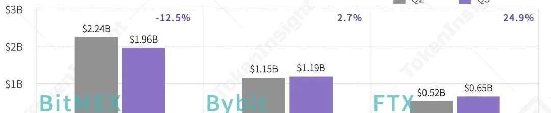 20Q2和Q3大型衍生品交易所日均成交量变化,来源:TokenInsight