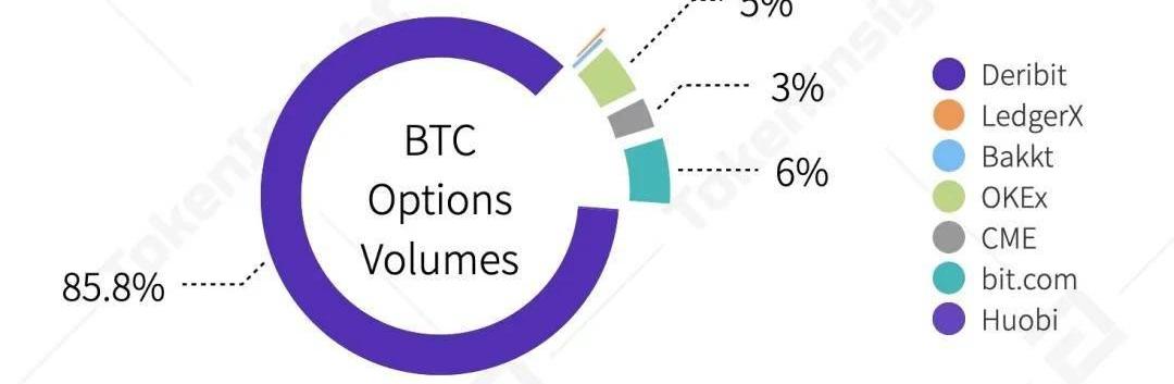 就持仓量而言,2020年9月末,Deribit未平仓BTC期权价值一度达到$1.7B,同期CME、OKEx、bit.com持仓量分别达$295M、$121M,$105M。四者为目前期权市场的主要玩家。