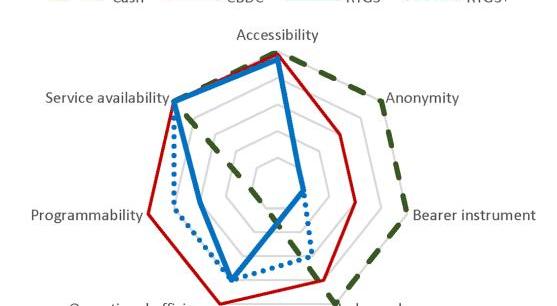 从最终用户的角度来看,独立性是指使用支付机制所需的中介成都。现金具有高度的独立性,因为纸币的兑换需要两方之间进行实物兑换。但是,电子传输需要一定程度的中介。电子系统要求最终用户使用物理设备,例如芯片嵌入式卡或智能手机。RTGS系统还需要使用金融机构接入网络。RTGS+系统可以将参与范围扩大到非金融机构。CBDC作为数字支付系统,需要某种形式的中介,例如芯片嵌入式卡,移动设备,移动服务提供商或数字钱包提供商。