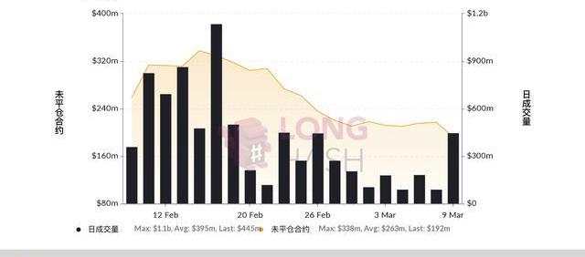 随着市场反弹,芝加哥商品交易所比特币期货市场的交易量自2月底以来首次超过4亿美元。正如来自Skew.com的数据显示的那样,CME比特币期货市场交易量的激增恰逢ETH的暴跌。