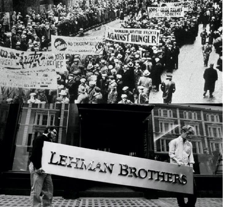 经济危机场景。1929年开始大萧条导致了罗斯福新政,2008年世界金融危机导致资本市场重新“洗牌”。