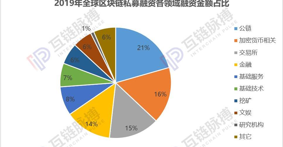 互链脉搏研究院统计数据显示,2019年公链、加密货币相关、交易所和金融领域的融资金额分别为44.46亿元、35.57亿元、31.9亿元和29.44亿元,四大领域融资金额占比合计高达66%。