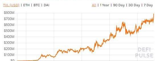 去中心化金融在以太坊区块链上的应用持续增长,而且非常受欢迎。在过去的几个月里,被锁定的以太坊数量几乎翻了一番。这个数字已经达到了310万ETH的历史新高,DeFi应用锁定价值达7.98亿美元。