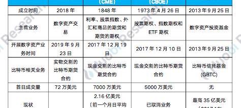 芝加哥期权交易所和芝加哥商品交易所都早在2017年12月上线了比特币的期货合约。其中,CBOE是美国最大的期权交易所,主要提供股票期权、指数期权和ETF期权。CME是全球最大期货交易所,主要提供利率、股票指数、外汇和商品这四类产品的期货和期权交易。两者都可谓是传统金融市场的优秀代表。