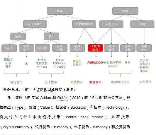 参照IMF专家关于数字货币的“货币树”分类,以上类型的DCEP既是由央行创设的记账单位,属于物基支付方式;同时又具有锚定一篮子储备资产特点,具有权基(claim-based)支付属性,可以称为兼具权基与物基属性的复合币种。