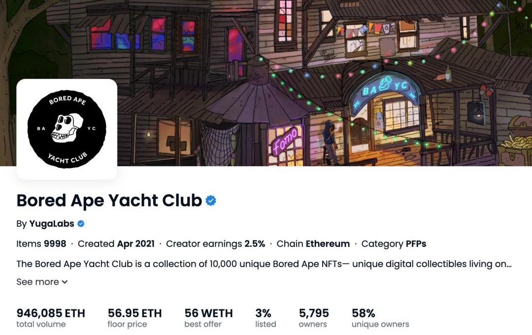 BoredApeYachtClub是基于以太坊区块链的一个集合,包含了10,000个BoredApeNFT,这些NFT是通过生成式创建的,因此非常珍贵。
