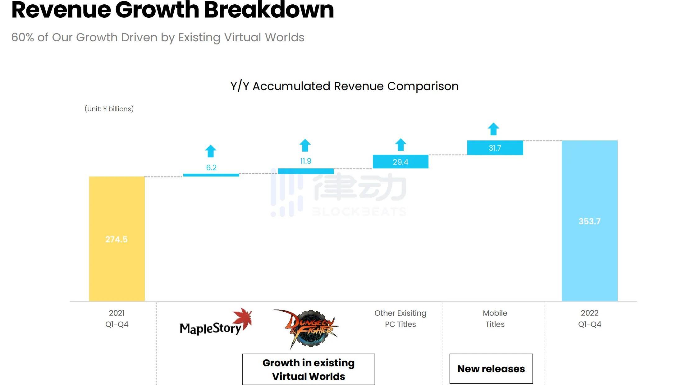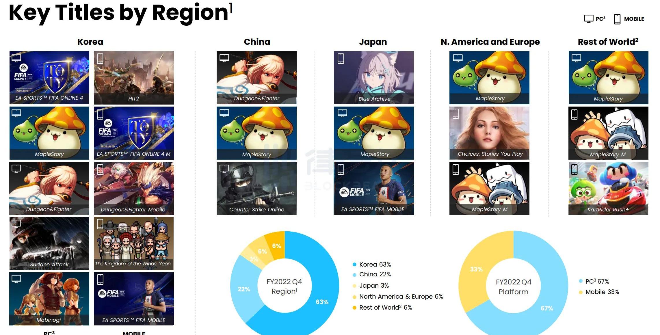 「冒险岛」与「DNF」和「FIFAONLINE4」是当前NEXON的「三驾马车」截止到2022年第4季度,「冒险岛」在全球范围内有超过1.8亿的注册玩家,总收入超过40亿美元。相比于2021年,「冒险岛」2022年的全年收入增长了62亿日元。