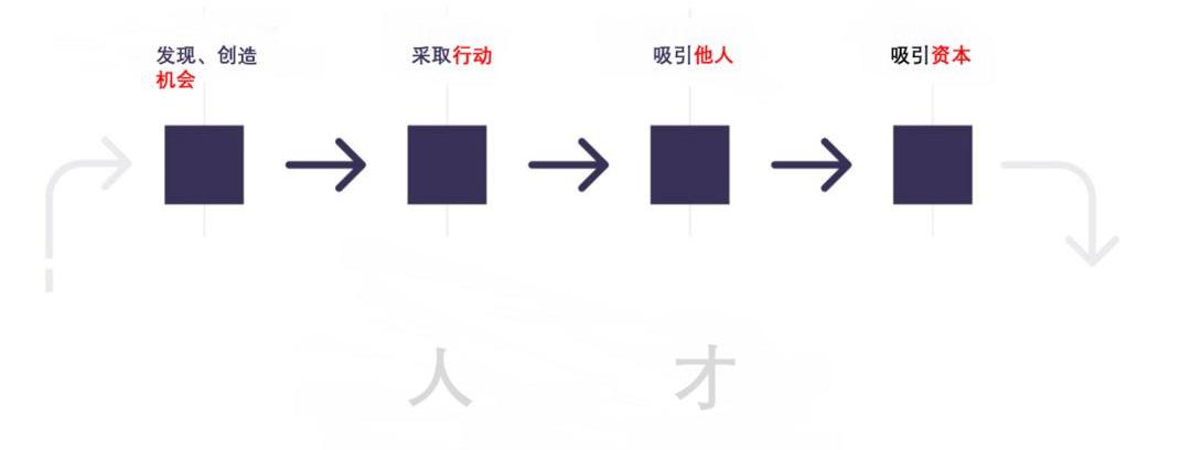 它确保了人们是否能够看到诱人的机遇并且着手做事;以及他们是否能成功征集其他人来一起推进项目,他们是否能够向社区展示项目,寻求所需资源以持续发展。
