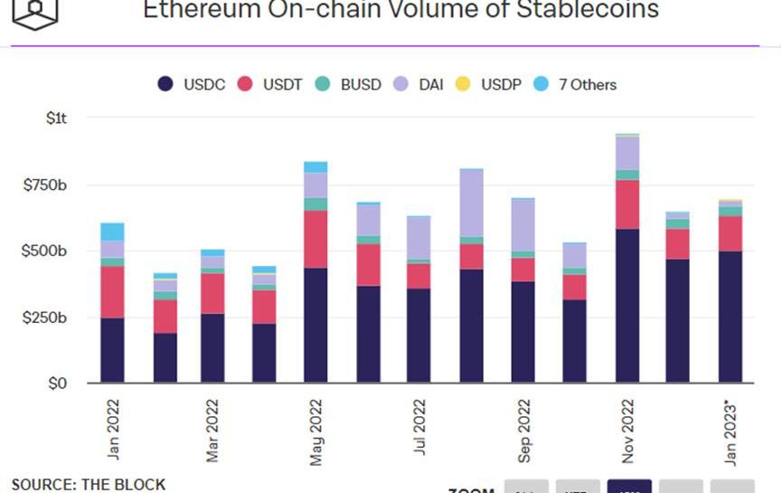 ?在过去的12个月里,稳定币的链上交易量有所增加,尤其是USDC同比增长了15%。USDC发行商Circle宣布即将推出CCTP,这是一个跨链转移协议,将与现有的桥接竞争,在区块链之间转移资产。