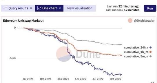 这是我之前工作的HFT高频做市商在传统金融中常用的一种度量方法。它衡量多个时间范围内执行交易的性价比。“边界”预示着我们实现的盈亏,要想准确找到每个LP和交易方式会很繁琐。
