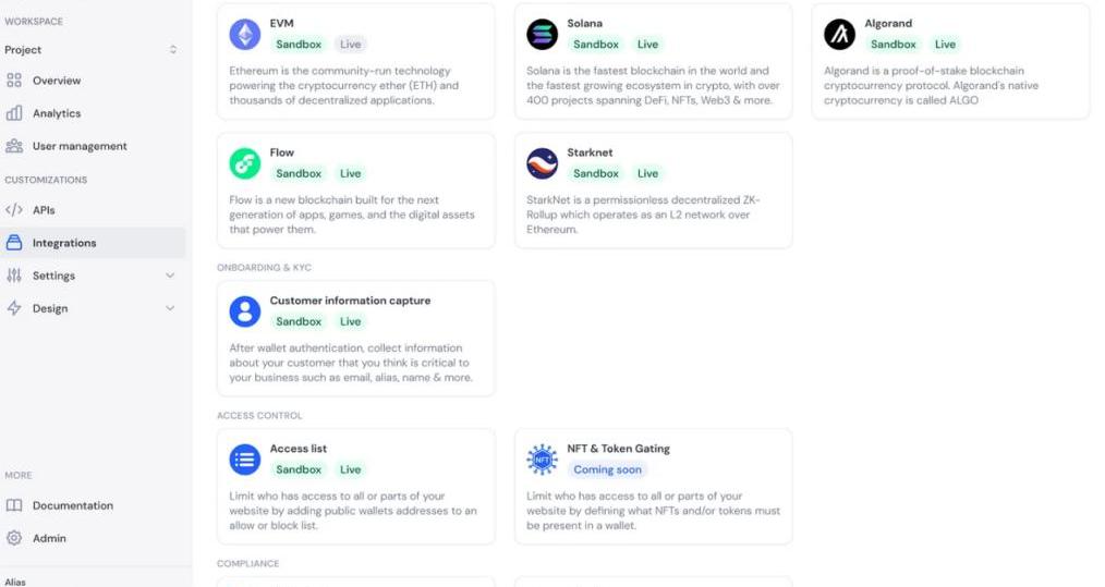 Dynamic提供的仪表盘允许开发人员配置启用的区块链、在注册期间捕获用户信息、为内测和NFT分发创建白名单以及许多其他与身份相关的功能。在Dynamic上进行基于身份验证的编排无需接触代码。