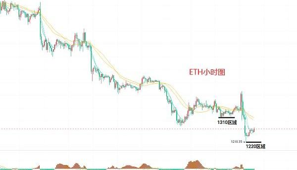 9月22日以太坊(ETH)合约技术面分析:今日方面,大周期日线级别隔夜冲高回落,收于1300下方还是处于弱势行情当中,市场对于未来继续大幅加息的担忧致使市场情绪降至冰点。短周期小时图来看昨日基本保持1320支撑上方震荡盘整,在会议前市场情绪较为乐观增长,呈现出积极的走势。数据公布后加息75基点符合预期反弹,但是未来加息幅度提升和22年基准利率提升至4.4%,以及11月份加息预期达到75个基点再度让市场陷入悲观中,行情出现先涨后跌,最高冲至1415区域后承压下行,今早最低跌至1220区域;目前总的来说短期市场需要消化恢复,之后如情绪回暖将会对原区间下沿进行回抽确认,留意下方低点支撑反弹;因此今日ETH短线合约交易策略:反抽1300-1320区域空,止损1350,目标看1220-1200区域;1200-1220区域多,止损1170区域,目标看1280-1300区域;