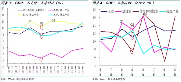 非典疫情对经济增长的影响主要发生在 2003 年二季度,GDP 同比增速明显下滑至 9.1%,下滑幅度 0.9 个百分比。从行业来看,酒店餐饮受疫情的负面冲击最为显著,对工业和房地产等行业均有偏负面影响,疫情消退之后,GDP 同比增速出现 2 个百分比的反弹。